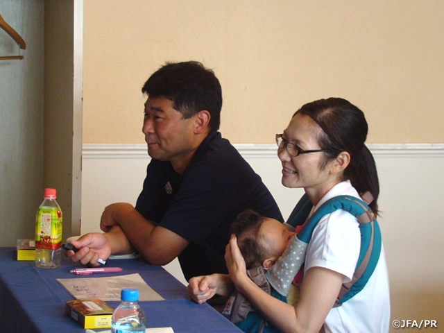 今回も出産を経て復帰した審判員が参加しました。お母さんがフィットネステストや講義の時間帯は、ご自身審判員・審判インストラクターでもある旦那様が献身的に支えていたのが印象的でした。ライフスタイルが変わっても審判を続ける方を、審判委員会女子部会では支援していきます。