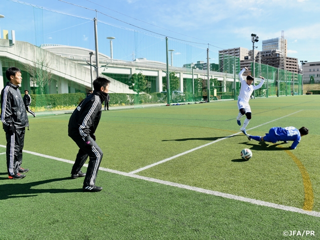 昨シーズンの課題の一つとなったペナルティエリア内における事象をより的確に判断につなげるために、ミスが起きるエリア、反則の種類、主審と争点との距離などを分析、そして実践の場を設定したプラクティカルトレーニング、実際の映像を確認しながら判定についてのディスカッションを主なプログラムとしました。審判員は積極的な態度で参加し、なぜミスが起きてしまうのかなど深い議論が交わされ、改善すべき点の整理ができたものと考えます。