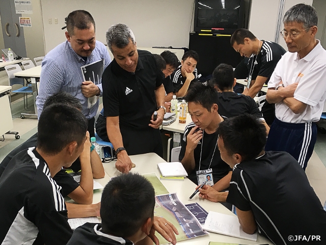 今回の目的は、「セットプレーにおけるマネジメントスキル及び的確な判定の習得」としました。セットプレー、特にFKコントロールではイングランドからのインストラクター、Ray Oliver氏による講義を受け、プラクティカルトレーニングは審判員自らが考えて行いました。審判員からは「プラクティカルトレーニングを自分たちで考えることによって教えられるよりもより深く考えなければならないので勉強になった」とのコメントがありました。「的確な判定」ではJリーグ担当審判員の研修会で使用した映像を使って判定基準の一貫性を求めました。ここではハンドリングの判定基準について再確認し、ある程度の一貫した基準を持つことができました。また、毎回行っている副審研修では、オフサイドと際どいタッチラインアウトについての講義とプラクティカルトレーニングを行いました。審判員は際どいタッチラインアウトとオフサイドをほとんど同時に判断することの難しさを実感したようでした。また、今回はフィジカルチェックとして、フィールドテストを実施して個々のフィジカルレベルを確認しました。この研修会で得たものを生かして、セカンドステージでの的確な判定による円滑なゲームコントロールを期待したいと思います。