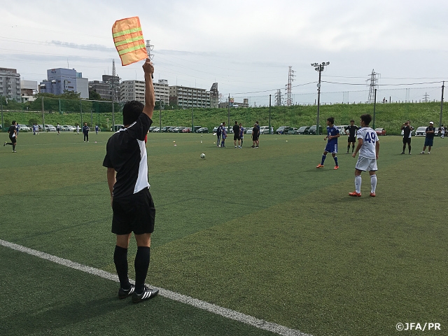 「自分が2人いると仮定して、主審のあなたはもう1人の自分を副審に任命しますか?」という手塚インストラクターからの問いかけには副審の任務、副審に求められていること、今自分がしていることを見直す機会となりました。またタッチラインの監視とオフサイドラインの監視の両立をテーマに、両立の難しさ、意識する点などを話し合い共通認識を持つことができました。次に自分が主審をした際に副審は今どういった状況なのかがわかることでチームとしてどうするのか、また最初の打ち合わせの内容も変わってくると思いました。
