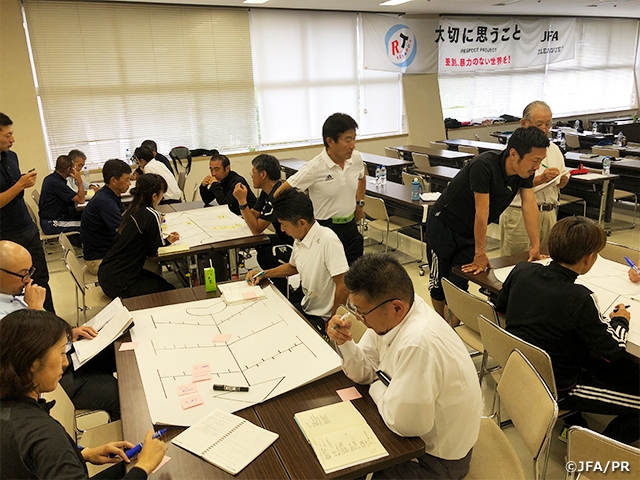 JFAレフェリーキャラバンに3級インストラクターとして参加し、大変貴重な経験をさせていただきました。緊張の中始まった講義では、飯田プロフェッショナルレフェリー自身の過去の苦い経験談を教材に、場の雰囲気を和ませてもらい、正しい判定を導くために『より良いポジショニング』の大切さを再確認出来ました。「プラクティカルトレーニングの特性」の講義では、『聞くだけでは忘れる』『見れば覚えられる』『行ったことは理解する』【理解する=人に説明でき、相手が理解出来る】この言葉が印象的でした。実際にプラクティカルトレーニングを作成する時に「フィッシュボーン」を使って必要な要素の拾い出しや、課題をチュータリングする際には、レフェリー自身に気付かせるように導くテクニックと参加している審判員が共有出来るように指導する事が大事だと勉強出来ました。今回、経験出来たことを地域に持ち帰り、審判員の指導をしていく過程で自らもスキルアップし、1人でも多くの審判ファミリーが増えるよう努力して行きたいです。