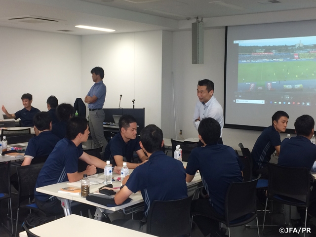 正しい判定と美しさを追求することをテーマとし、映像をもとにディスカッションしました。⼈それぞれ感じ⽅が違う中で、⼤⽅の⼈がよいと感じるものがあることを前提に、ゲームに連動した動きとそのための準備、主審と副審それぞれの役割や責任、難しいオフサイドのシーンで注意することなどを学びました。最後には、副審として必要な動きの能⼒の確認もし、シーズン終盤に向けて、気持ちを新たにし、よい準備をすることができました。選⼿・関係者・観客など、より多くの⼈にサッカーを楽しんでもらい、⽇本のサッカーの価値を共に⾼めていけるように、これからも学び続け、それを試合の中で表現していきたいです。