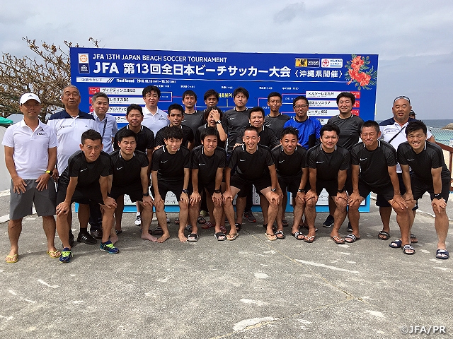 今回は、東海地域代表(静岡県)審判として全日本ビーチサッカー大会に初めて参加させていただきました。ビーチサッカーには、2年前から本格的に携わり審判をしていますが、静岡県は東海リーグや県リーグが開催されており審判を行うには良い環境であります。そのため、東海のビーチサッカーのレベルを上げるためにも、今回の指導内容を審判に伝えることにより審判のレベルアップをしたく大会に参加しました。今回、インストラクターの方々には色々ご指導を受けましたが、その中でも印象に残ったものを紹介します。一点目は、「正しい4秒カウント」です。今までの自分のカウントでは、カウントするタイミングが遅く、1秒までのカウントが早い状態でしたが、指導を受けることにより、選手のプレー状況を把握し正しいタイミングからの4秒カウントが出来るようになりました。なお、ペナルティエリア内での守備側競技者間のボールの受け渡し時のカウントのホールドも身に着けれました。2点目は、「考える」事です。日頃から自分の行動について考えていなければ、身についた悪い習慣が試合のレフェリングに出てしまう事を学びました。そのため、日頃ごろからいろいろな事について考え、良いことを習慣化していかなければならない事を学びました。今回大会に参加し研修により身についたものはまだまだありますが、来年ビーチサッカーが行われるまで忘れないよう繰り返し思い出し、日頃から考えることを身に着けてレベルアップを行っていきたいと思います。最後に、今回指導をして頂きましたインストラクターの皆様、そして、一緒にレフリーをして頂いた皆様、最高のチームでした。本当にありがとうございました。