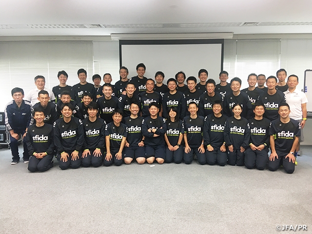 審判員として試合でのより良いコントロールをするために、多くの情報を収集するための視野の確保や各自が任務を遂行した上での審判チームの協力について、どこに意識を持つのか、どの様な場面で、どの様な方法で実践すると効果的なのかを意見交換し、プラクティカルトレーニングにより体感しました。さらに良いコントロールを支えるフィジカル面の向上のため、フィジカルトレーニングの実施方法について講義と実践を行いました。