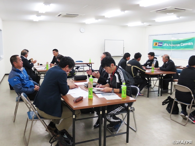 1級審判員不在の状況が続く佐賀県にとっては、いかに若手審判員を発掘、育成するかが課題であり、グループワーク形式で行った3種、2種の技術指導者とのディスカッションにおいては、全県で一斉にユース審判員を対象とした研修会を実施する「審判の日」の創設など、課題解決への具体的なヒントとなる提言もあり、今後の取り組みにとって有意義なものでした。