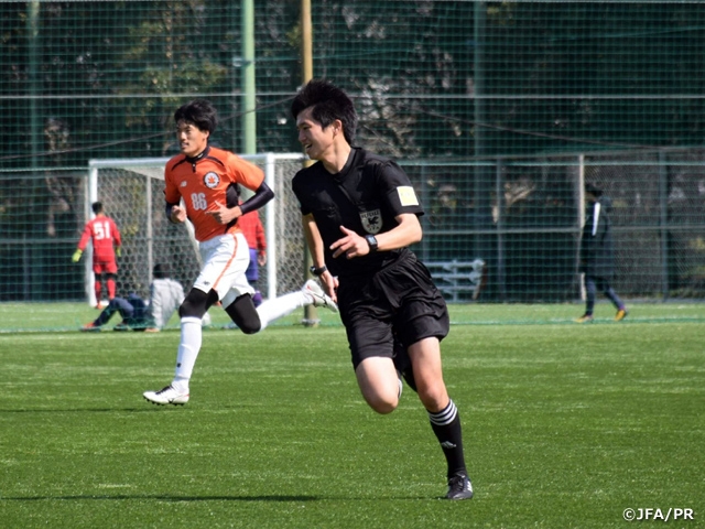 今回の研修会では、「サッカー理解を深める・リーダーシップを発揮する」というテーマが示され、審判員あるいは一人の人間として、自ら考え、その考えを仲間と共有し議論することで、大きく成長することができる研修会でした。担当した試合では、JFAインストラクターと地域インストラクターの方々に分析及びご指導いただいたことに加えて、参加している各地域の同世代の審判員からも意見やアドバイスをもらえたことで、試合を客観的かつ多面的に分析し、良かった点と改善点が明確になりました。今回の研修会で学んだことや明確になったことなどを整理し、今後の審判活動に活かしていき、更なるレベルアップに努めていきたいと思います。