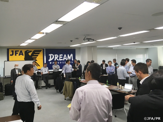 参加者は、アセスメントスキルの向上を目指し、JFA審判インストラクターからの講義やグループワークを通じて評価やレフェリング分析について学びました。