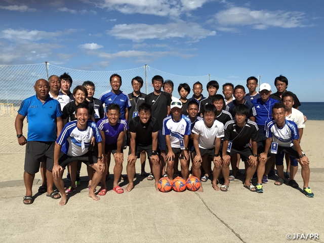 9月5日(木)~9月8日(日)まで、鳥取県賀露海岸にて連日36度を超える暑さの中、全日本ビーチサッカー大会と並行してビーチサッカー審判研修会を行いました。5日の研修ではプラクティカルトレーニングを行い、夜は座学にてビーチサッカー特有のシザースキックなどの判定について共通認識を確認しました。3日間の大会期間中は試合終了後、毎夜試合の振り返りを行い、翌日の試合に備えました。
