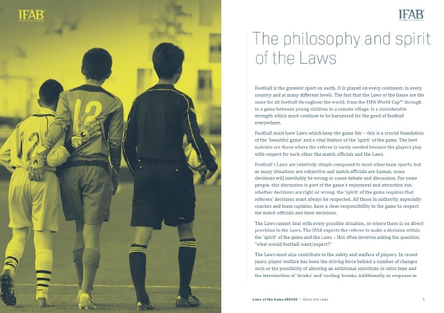 世界で使われるサッカーの競技規則2021/22の1ページに自分の写真を使っていただけたことはとても光栄であり、審判員である自分にとって人生での誇りです。