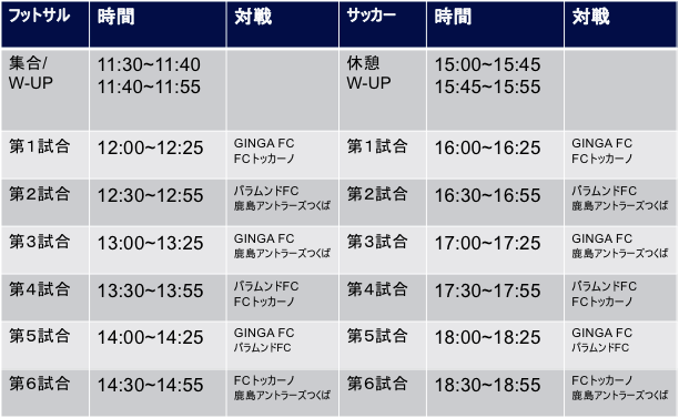 GINGA FA、FCトッカーノ、パラムンドFC、鹿島アントラーズつくば