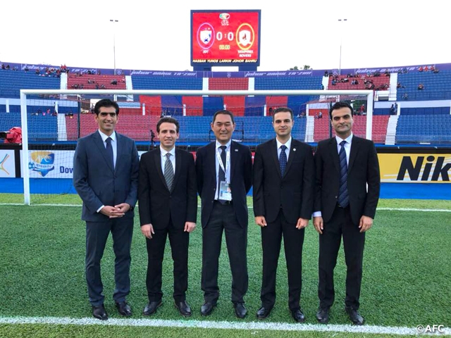 11月1日(火)にマレーシアのクアラルンプールで開催されたAFC審判アセッサーセミナーにおいて、AFC審判事業への長年の貢献および感謝を称えるセレモニーが行われ、松崎康弘氏、岡田正義氏を含む7名のAFC審判インストラクターへ記念盾(Memento Award)が贈呈されました。