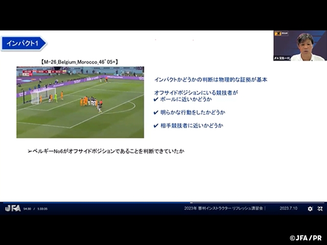 7月10日(月)にオンラインにて、FIFA World Cup Qatar2022のレフェリーを分析したReferee Technical Reportを基に審判指導者を対象としたリフレッシュ講習会を開催しました。
