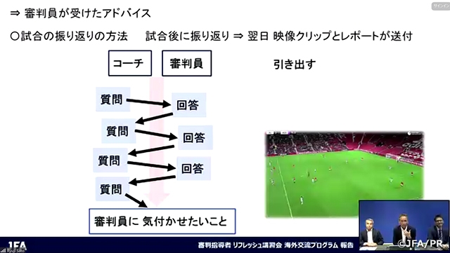 今後も、この交流プログラムが行われた際には、そこで得たことや経験したこと等を可能な限り皆さんと共有し、私たちがより情熱(passion)をもってフィールドに向かう審判員の背中を押せるよう、互いに学び合える場を提供していきたいと考えています。