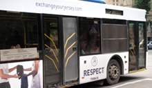 開催都市のひとつウクライナのLVIV(リビブ)では街中を走る路線バスの車両にもUEFAのリスペクトの広告が載っていました(写真参照)。また、街中の大きな公共施設にも大きな広告が描かれているのを見かけました。