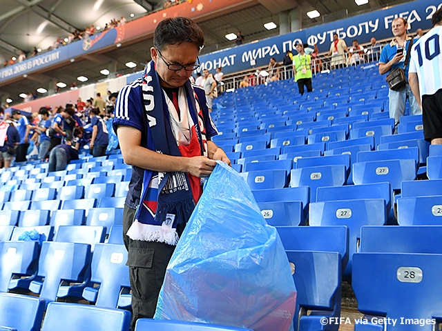 ロッカールームだけではありません。日本からのサポーター、観戦客は、一生懸命に応援した後、勝ったときも負けたときにもゴミを残さず、スタンドをきれいにして帰ったことが、大会開催国ロシアだけでなく、世界的な話題になりました。