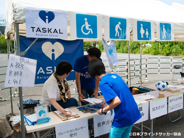 試合会場には、座席への案内といった来場者のサポートを行うリレーションセンター「TASKAL」を設置。他にも、試合会場で実況中継、視覚障がい者のために凹凸のある会場図を制作、聴覚障がい者には筆談ができるような準備をした。サービス介助士の資格を認定している日本ケアフィット共育機構と協働することで障がいのある観戦者にも充実したサービスを提供することが可能になった。