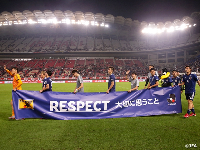 新しいロゴが何とも心を躍らせる。スタジアム、テレビを通じても。9月5日のキリンチャレンジカップでは、パラグアイのファビアン・バルブエナ、吉田麻也両キャプテンによるリスペクト・フェアプレー宣言、試合後には選手がリスペクトバナーを持ってグラウンドを一周するなど、選手のリスペクト(大切に思うこと)への心持を表していた。