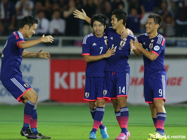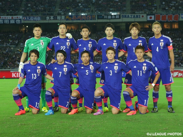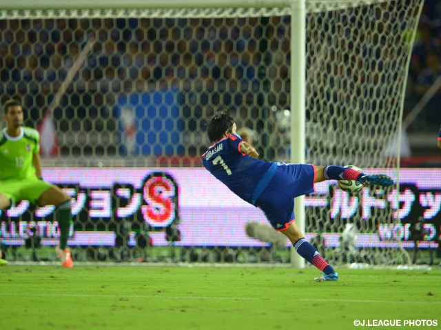 日本は相手の攻撃にDF吉田麻也選手、MF細貝萌選手、MF森重真人選手らを中心に体を張って阻止。一方で、前半28分に大迫選手、同38分に柿谷選手が縦パスに鋭く反応してシュートを狙います。柿谷選手はその1分後にも柴崎選手のパスにゴール前へ走り込んで右足で合わせましたが、いずれも相手GKに阻まれ、前半を0-0で折り返しました。