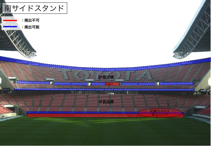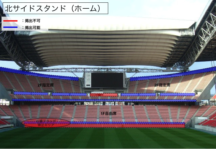 - ※大旗を振っての応援は、両ゴール裏エリアの指定場所にてお願いします。