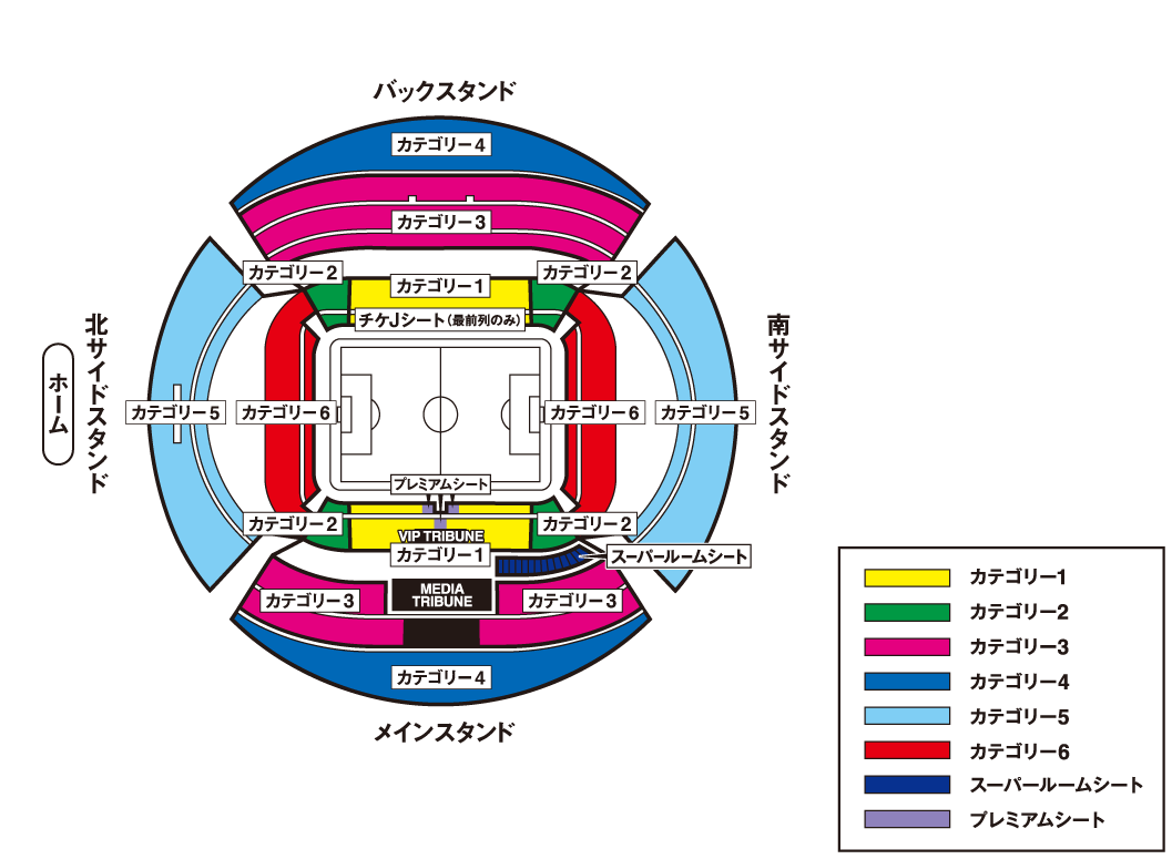 - ゴール裏(カテゴリー6)のエリアでは、立ち上がって応援されるサポーターがいらっしゃる場合があります。このエリアは自由席のため、それぞれのエリア内でのお席の移動は可能ですが、混雑時等は移動が難しい場合もあります。そのため、着席して観戦を希望されるお客様は、指定席での観戦をお勧めします。