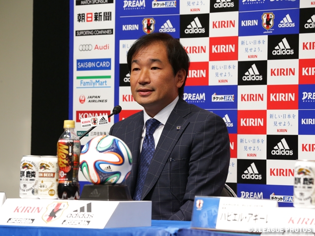 SAMURAI BLUE(日本代表)のハビエル・アギーレ監督は11月5日(水)、今月のキリンチャレンジカップ2014でのホンジュラス戦(14日(金)、愛知・豊田スタジアム)、オーストラリア戦(18日(火)、大阪・ヤンマースタジアム長居)に臨む代表メンバー23人を発表し、「アジアカップを考えて、この2試合は勝ちに行く」と語りました。