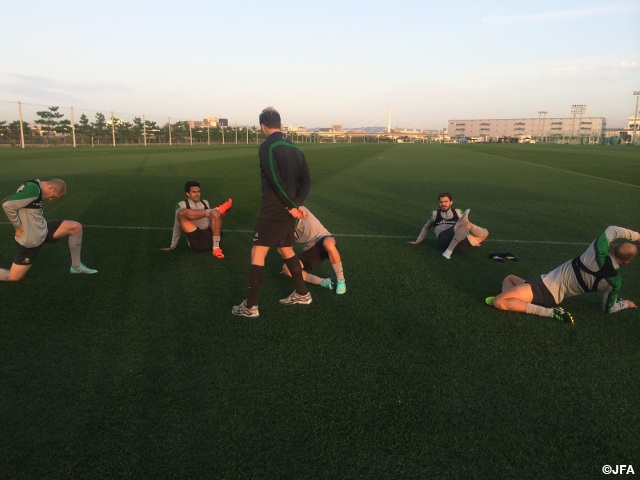 試合約1週間前から選手が次々と来日し、試合に備えています。初日の10日(月)は到着した数人のみで軽めのストレッチをして、コンディションをチェックしていました。全選手が来日してから、本格的な練習がスタートするようです。