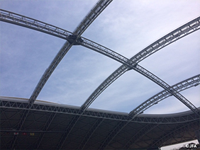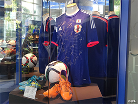 キリンチャレンジカップ2015 JALチャレンジカップ2015での使用球、SAMURAI BLUE(日本代表)のサイン入りユニフォームやスパイクを展示