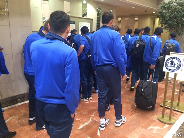 3月27日(金)に韓国で親善試合を戦ってからの来日となりましたが、選手たちは時折周囲に笑顔を振り撒きながら、疲れも見せずに東京都内のホテルへ移動。翌日からの練習および31日の試合に向けて英気を養いました。