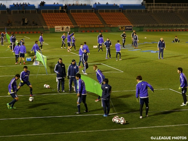 SAMURAI BLUE(日本代表)は3月29日、JALチャレンジカップ2015のウズベキスタン戦(31日、東京スタジアム)へ向けて東京都内で練習しました。