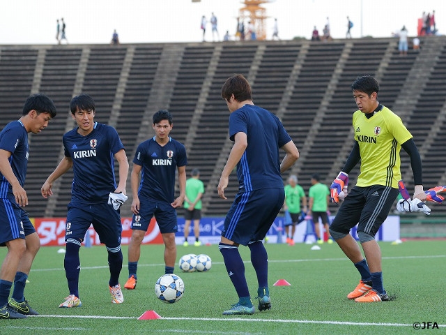 SAMURAI BLUE(日本代表)は11月14日、2018 FIFAワールドカップロシア・アジア2次予選第6戦のカンボジア戦へ向けて、プノンペン市内のナショナルオリンピックスタジアムで練習を開始しました。