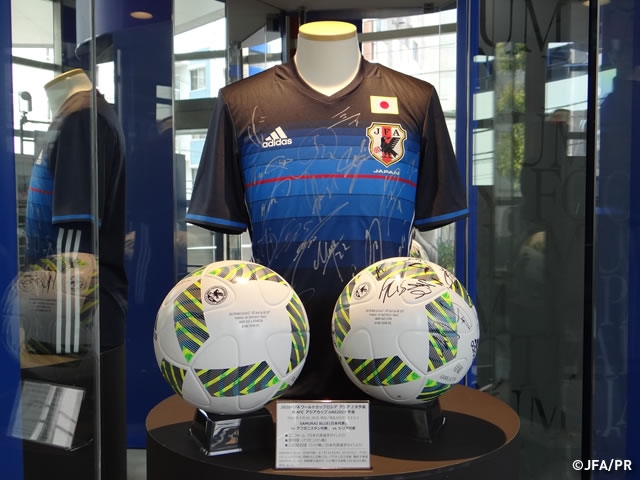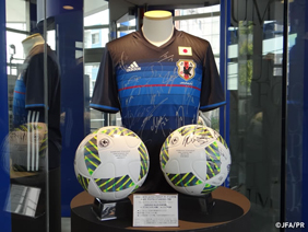 2018FIFAワールドカップロシア アジア2次予選 兼 AFCアジアカップUAE2019 予選 サイン入りユニフォーム、使用球などを展示