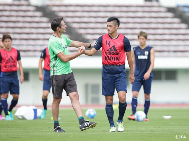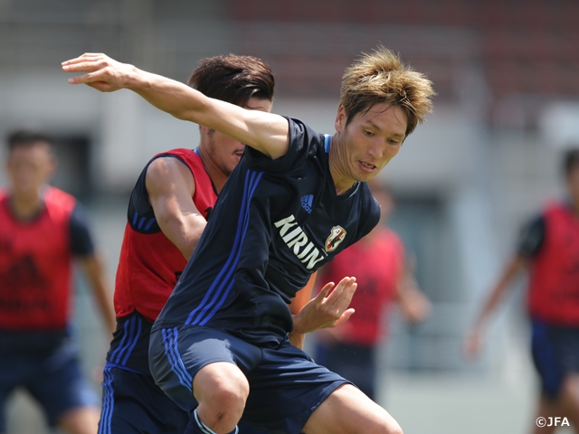 なお、FW岡崎慎司選手(レスター・シティ)、MF香川真司選手(ボルシア・ドルトムント)は足に違和感を覚えたため、MF柏木陽介選手(浦和レッズ)と共に別調整でした。