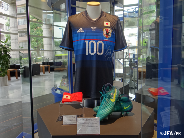 アジア最終予選(Road to Russia) 長谷部誠選手代表戦100試合出場記念ユニフォームなどを展示 ~日本サッカーミュージアム~