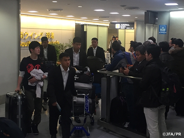 昨年10月のプミポン国王の死去を受け、喪に服すチームは黒のスーツを着用して来日。前日にタイで行われたサウジアラビア戦後の移動となり、スタッフや選手はやや疲れた表情を見せていました。