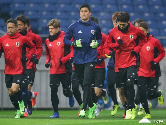 チームは27日(月)に前日公式練習に臨み、試合へ向けての最終調整を行ないます。タイ戦は28日(火)、埼玉スタジアム2OO2にて19:35キックオフの予定です。