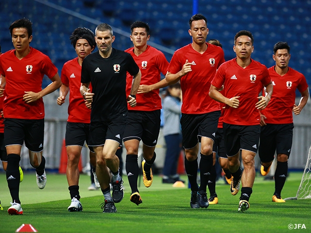 SAMURAI BLUE(日本代表)は8月29日(火)、勝利で出場が決まる2018年FIFAワールドカップアジア最終予選のオーストラリア戦を2日後に控えて、試合会場の埼玉スタジアム2002で全選手が揃って練習を行ないました。