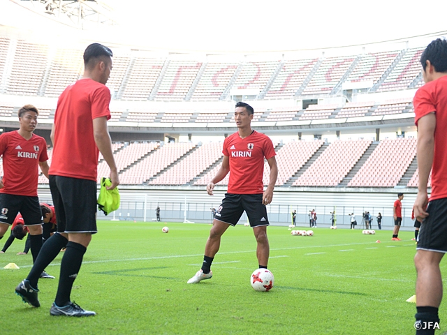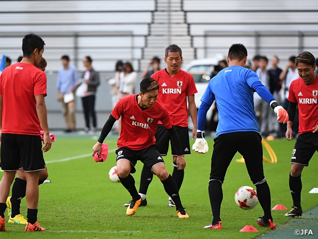 SAMURAI BLUE(日本代表)は10月4日(水)、2日後に控えたキリンチャレンジカップ2017のニュージーランド代表戦に向けて、試合会場の愛知県・豊田スタジアムで練習を行ないました。