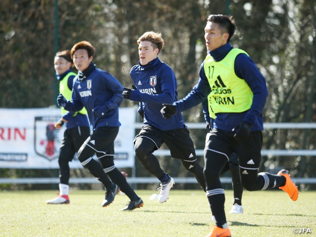 SAMURAI BLUE(日本代表)は3月20日(火)、ベルギーのリエージュで行われる国際親善試合マリ代表戦(23日・金)とキリンチャレンジカップ2018 in EUROPEのウクライナ代表戦へ向けて、リエージュ郊外で合宿2日目の練習を実施しました。
