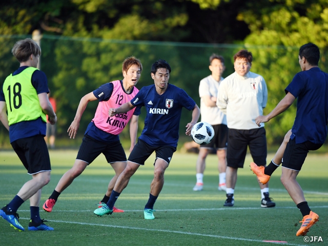 SAMURAI BLUE(日本代表)は5月22日(火)、千葉県内で30日(水)のキリンチャレンジカップ2018ガーナ代表戦へ向けた練習を行いました。