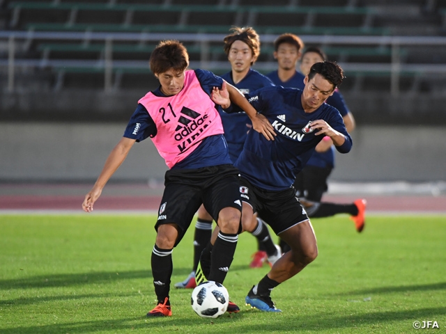 キリンチャレンジカップ2018のチリ代表戦(9月7日、札幌)とコスタリカ戦(11日、大阪)へ向けて札幌で調整中のSAMURAI BLUE(日本代表)は、合宿2日目の9月4日(月)、リーグ日程の都合で到着が遅れていた4選手がチームに合流して23人全員が揃い、本格的な練習もスタートしました。