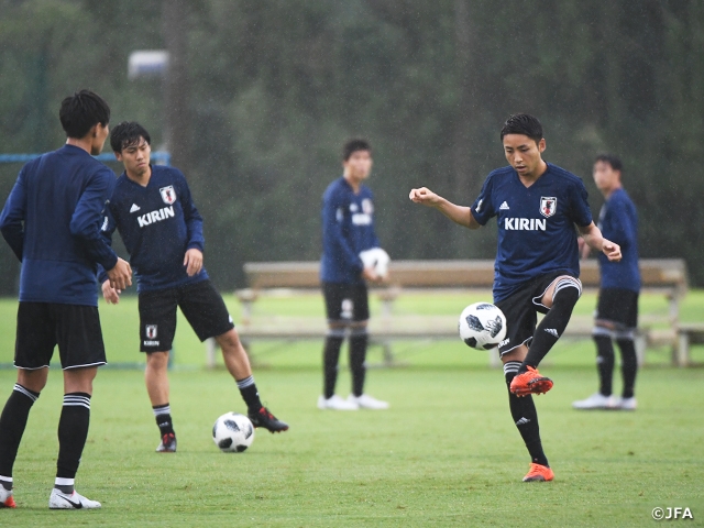 SAMURAI BLUE(日本代表)は9月9日(日)、2日後に控えるキリンチャレンジカップ2018コスタリカ代表戦(11日、大阪・パナソニックスタジアム吹田)へ向けて、大阪府吹田市内で練習を開始しました。