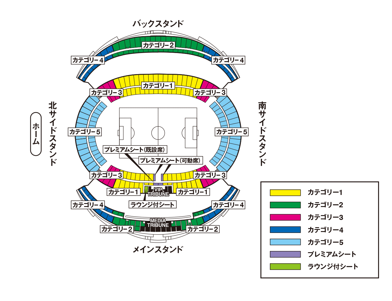- ゴール裏(カテゴリー5)のエリアでは、立ち上がって応援されるサポーターがいらっしゃる場合があります。