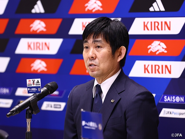 我々の代表活動を日ごろから応援してくださっているサポーターと国民の皆さんに感謝申し上げます。2026年のワールドカップに向けた新たなチームづくりとして、今回素晴らしい相手との試合で新たな船出となる活動ができることを、うれしく思います。2026年へ向けてチーム力を上げて成長することを考えながら、目の前の一戦で勝利を目指して戦います。その一戦一戦を積み上げていった先にアジア予選の突破とワールドカップでの成功があることを忘れずに、まずはウルグアイ戦から最善の準備とベストを尽くして戦い、一戦一戦、次の目標であるワールドカップへ向けて積み上げをしていきたいと思います。