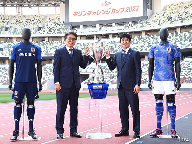 SAMURAI BLUE(日本代表)の森保一監督は3月15日(水)、キリンチャレンジカップ2023のウルグアイ代表(24日(金)、東京・国立競技場)とコロンビア代表(28日(火)、大阪・ヨドコウ桜スタジアム)との対戦へ向けた日本代表メンバーを発表。16強入りしたFIFAワールドカップカタール2022のメンバーを中心に、角田涼太朗選手(横浜F・マリノス)、中村敬斗選手(LASK)ら4選手が初めて招集されました。