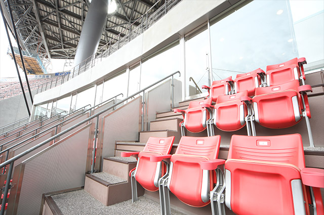 - スーパールームシートは屋外観戦できるバルコニー席と屋内の個室からなる、メインスタンド側にある特別室です。