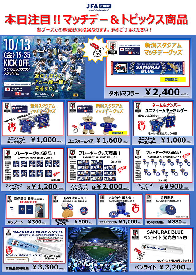 【MIZUHO BLUE DREAM MATCH 2023】2023年10月13日 カナダ代表戦マッチデーグッズを販売いたします。