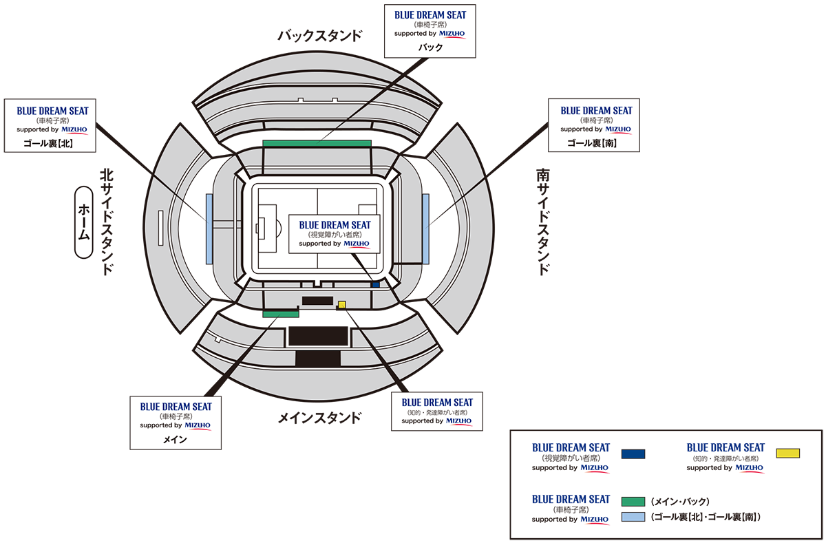 | 自由席 | BLUE DREAM SEAT(車椅子席)supported by MIZUHO(一般) ※駐車券なし*e /ゴール裏北・ゴール裏南 ※前売りのみ |