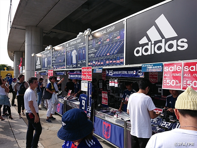 来場前に日本代表グッズを購入して行くか悩みましたが、会場の雰囲気を見つつ現地調達することにしました。私はタオルマフラーを、友人もタオルマフラーやユニフォームを購入。これで身も心も青く染めることが出来ました!一部商品では売り切れているもの、サイズが無いものもありました。確実に欲しいものがある人は事前に購入すると良いかも知れませんね!今回の私たちのように現地の雰囲気で購入するのもテンション上がって良いと思いますよ!