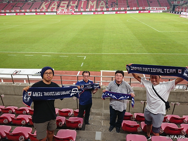 9月5日(木)、茨城県立カシマサッカースタジアムにて開催したキリンチャレンジカップ2019。一般公募により選ばれた観戦体験レポーターの皆さんに、日本代表戦の様子をレポートしていただきます!今回は、中込友也さんがご友人とともにスタジアムを回り、その感想をレポートにまとめてくださいました!