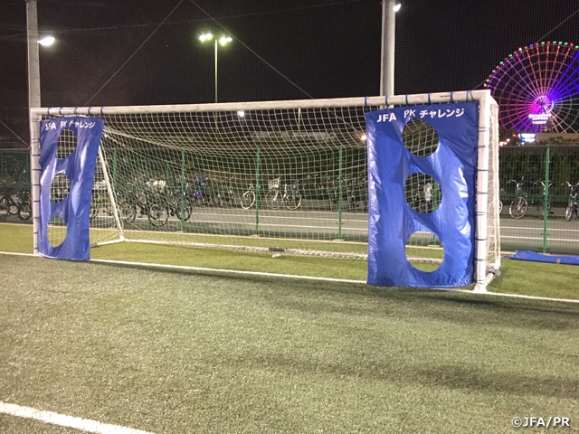 スタジアムから少し離れたところには、元日本代表の木並健治選手と岡中勇人選手とPKチャレンジに参加することができるブースがありました。